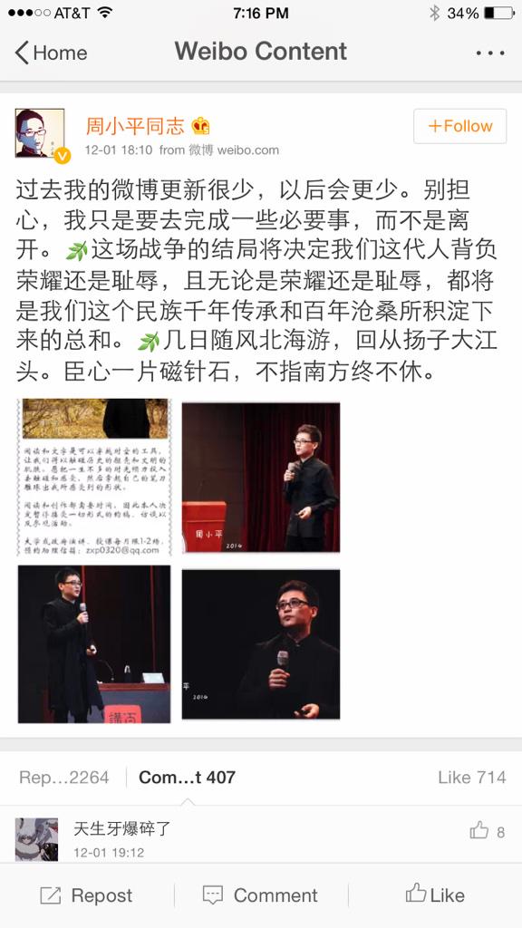 方舟子 @fangshimin · Dec 2@flyingmidge 这意思是周同志是南方系派到北京的卧底?