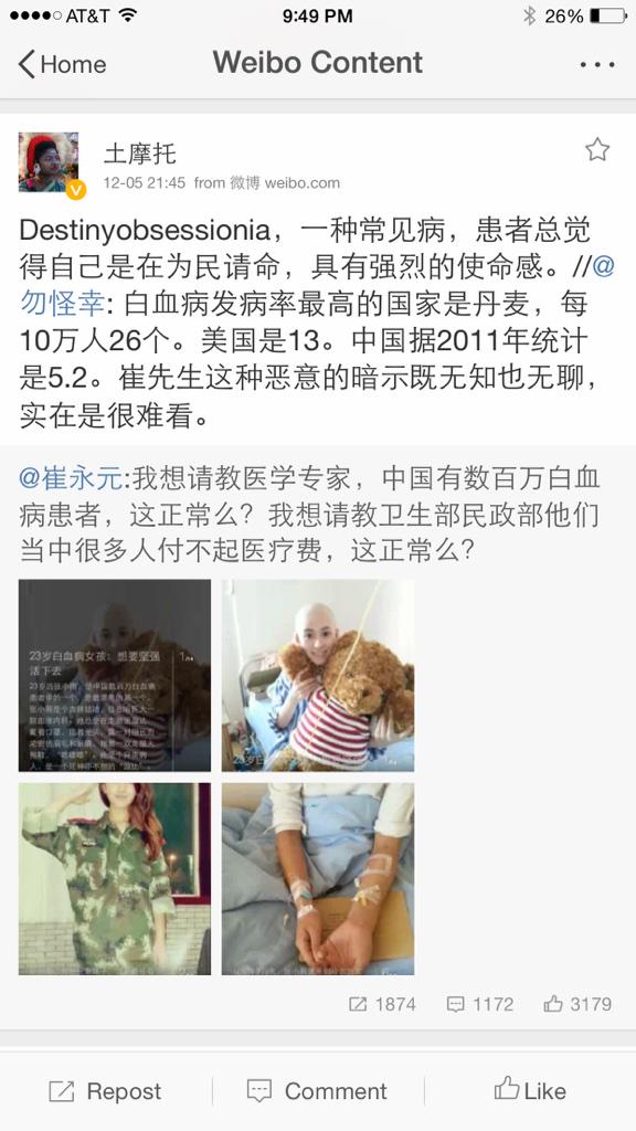 方舟子 @fangshimin · Dec 5白血病是搞“慈善”的人最喜欢搞的病。 https://pbs.twimg.com/media/B4Jr72kCMAA_csU.jpg:large