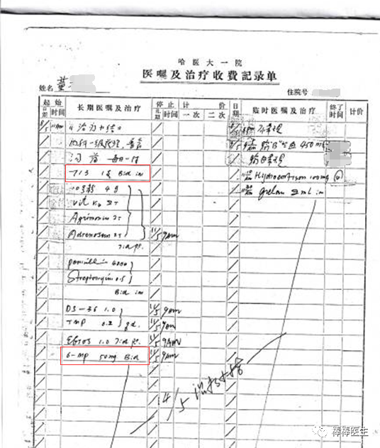 哈医大董某芝原始病历的医嘱单也证明确实使用了6MP(截图),明明用了化疗,却说是单用癌灵一号,这不是造假吗?饶毅每篇文献都看了,就是看不出来?