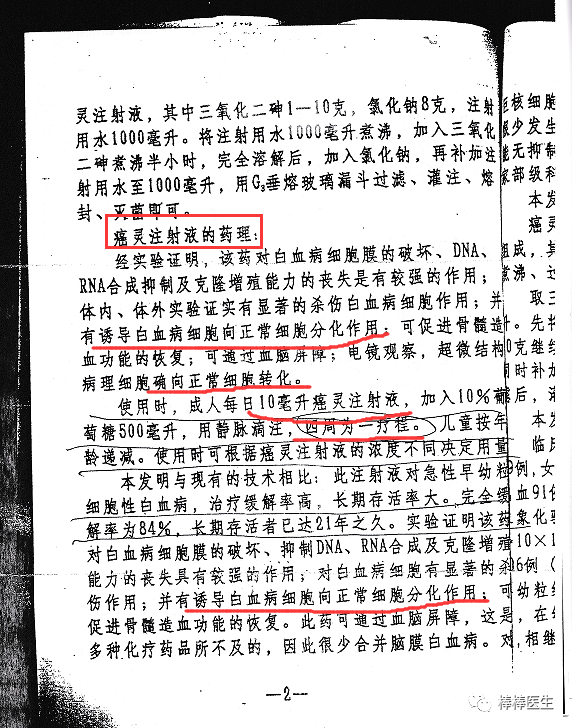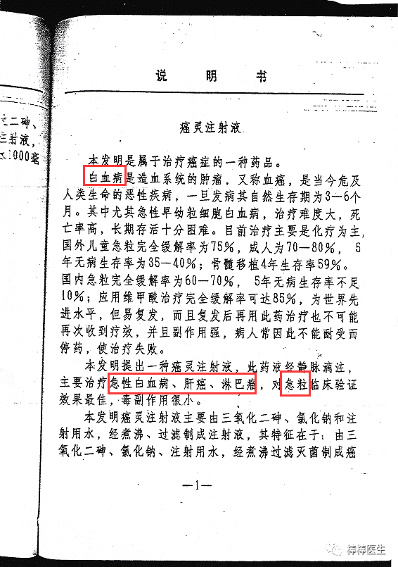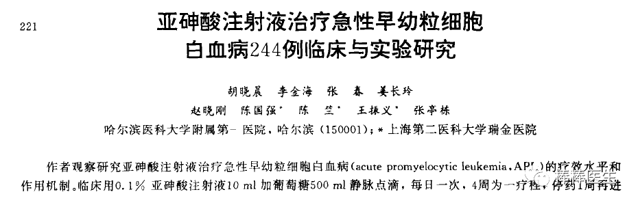 但正如我之前文章所指出的事实,1973年的论文是用癌灵一号(结合中医辨证和部分化疗)治疗6例慢性粒细胞白血病,不具有原创意义,更不是最早。国外1878年,1931年都早就有了三氧化二砷治疗慢粒的研究了,并且结果相同或更佳(详见商榷系列3)。事实上,哈医一院此后再也没有用癌灵一号治疗过慢粒。