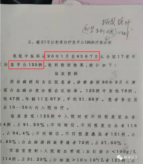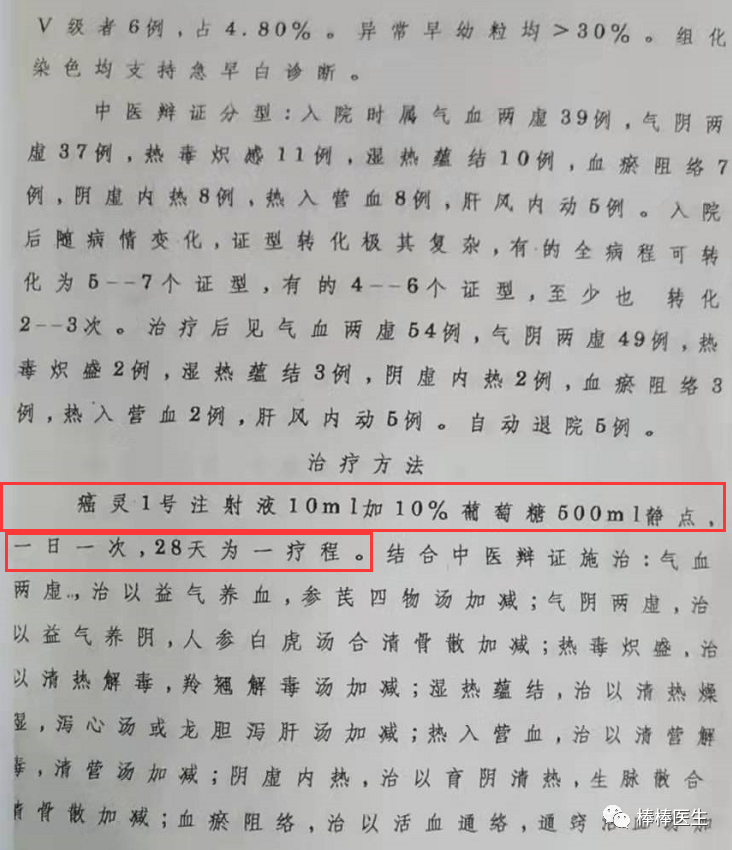 同时,直到1990年,事实上张亭栋们也没有开始大规模或针对性(对APL)单用三氧化二砷(或癌灵一号)来治疗APL。他们用的最多的是砷剂+化疗+中药辨证,因此,即便过程中出现少数APL长期存活的案例,也不足以说明是三氧化二砷的作用。