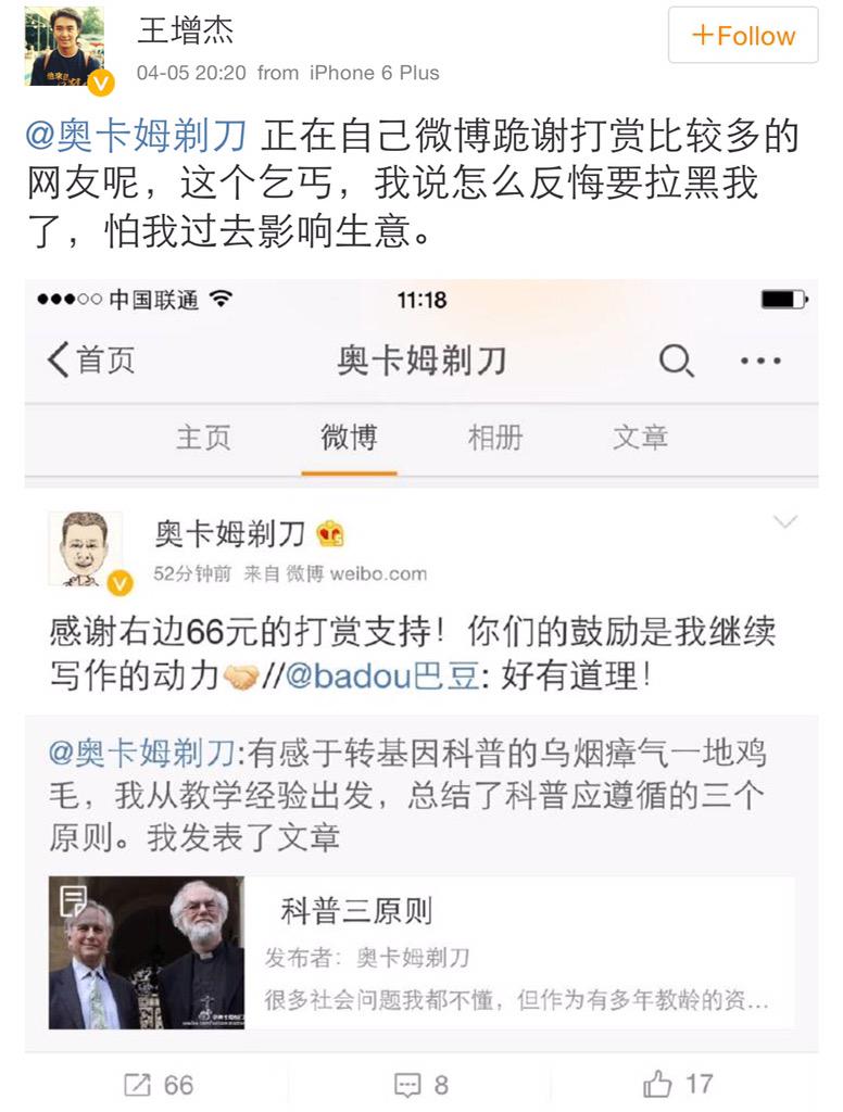 方舟子 @fangshimin · Apr 10打赏这个侮辱人的功能就是为叨叨量身定做的。 https://pbs.twimg.com/media/CCSmlMcUgAA7Ka1.jpg:large