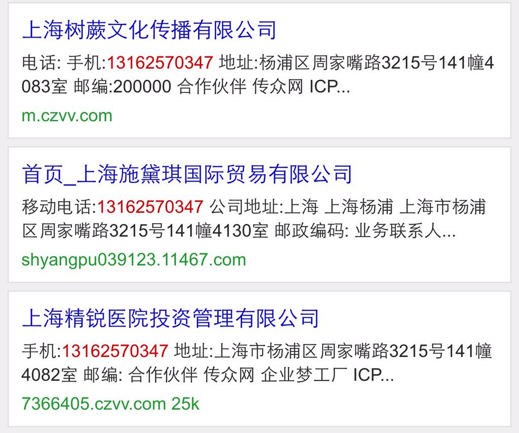 luxluYang ?@luckyangyang Apr 8 @fangshimin 还有【上海壹家益餐饮管理有限公司,…,,手机号码为13162570347。热诚欢迎各界朋友前来洽谈业务。 上海介福投资中心(有限合伙)…,联系人龚崇武,手机号码为13162570347】他的公司太多了吧