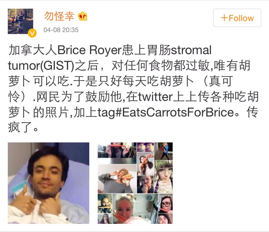 方舟子 @fangshimin · Apr 9勿怪幸好歹也是个“日本外科博士”,居然会去相信、传播有人对所有其他食物过敏、只能吃胡萝卜这种违背营养学常识的无稽之谈,可见其不学无术。这个病人相信他的癌症是因为食物中的毒素引起,迷信自己只能吃胡萝卜,要借此治疗癌症,而不是医生这么说的 https://pbs.twimg.com/media/CCJk31RUkAI97f6.jpg:large