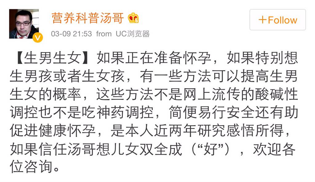 方舟子 @fangshimin · Mar 20国内营养科搞伪科学的真不少,出了一个顾中医,再来一个汤神医。 https://pbs.twimg.com/media/CAheVj5UgAEWaDo.jpg:large