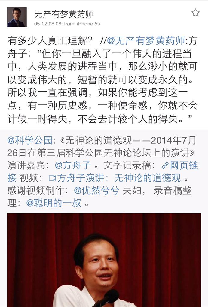方舟子 @fangshimin · May 3忆仔据说承认用语不当退出了上海无神论论坛组委会,不过从其退出后发的微博看,所谓用语不当是指骂我骂得还不够很。 https://pbs.twimg.com/media/CEICiMfUIAAD2ZU.jpg:large
