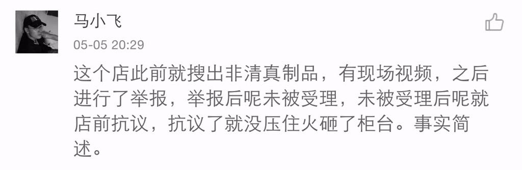 方舟子 @fangshimin · May 7不管怎样,砸人家的柜台是不对的,应该依法处理。如果所述情节属实,可以从宽处理。 https://pbs.twimg.com/media/CEY6oX6VIAElrAQ.jpg:large