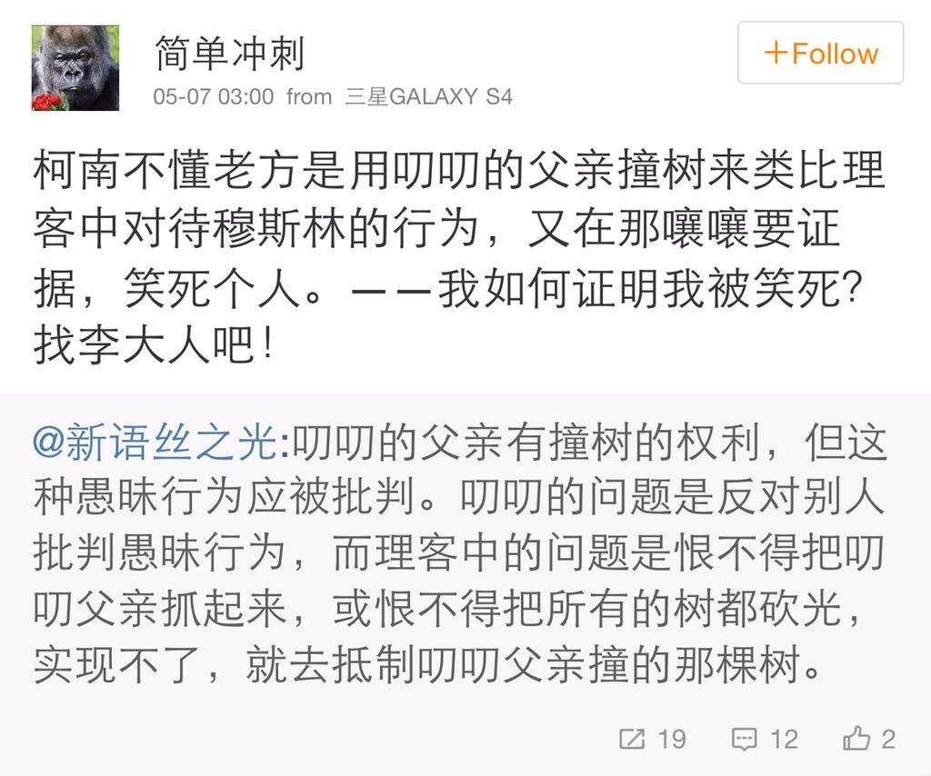 luxluYang ?@luckyangyang May 7 @fangshimin @jinghaol 叨叨的愚昧权出来后,很多人批判的不到点子上,老方批判叨叨时也提过的。