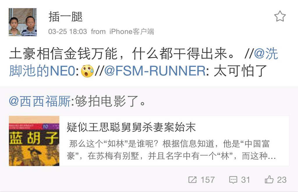 方舟子 @fangshimin · Mar 25这个土豪连杀两个老婆亲自动手,还留下一堆线索,要遭徐宥箴鄙视了。徐宥箴号称要杀敢自称老婆的女友就要雇凶,还号称不留痕迹。 https://pbs.twimg.com/media/CBAMDLyU0AA3xZa.jpg:large