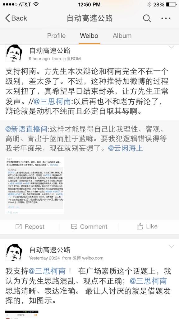 云闲海上 @yunxianhs · Jan 5@fangshimin 总盼着老方出错,还是低级的错,不仅是方黑们期待,有的方粉似乎也有这种微妙的心态,好奇怪