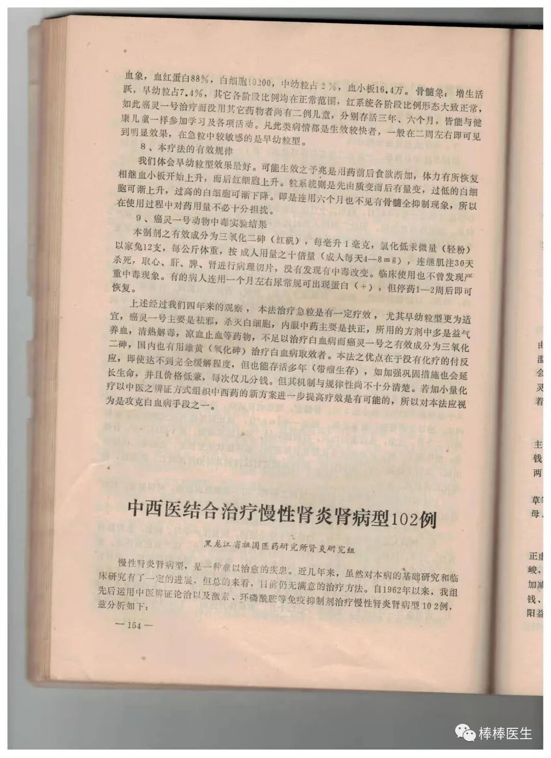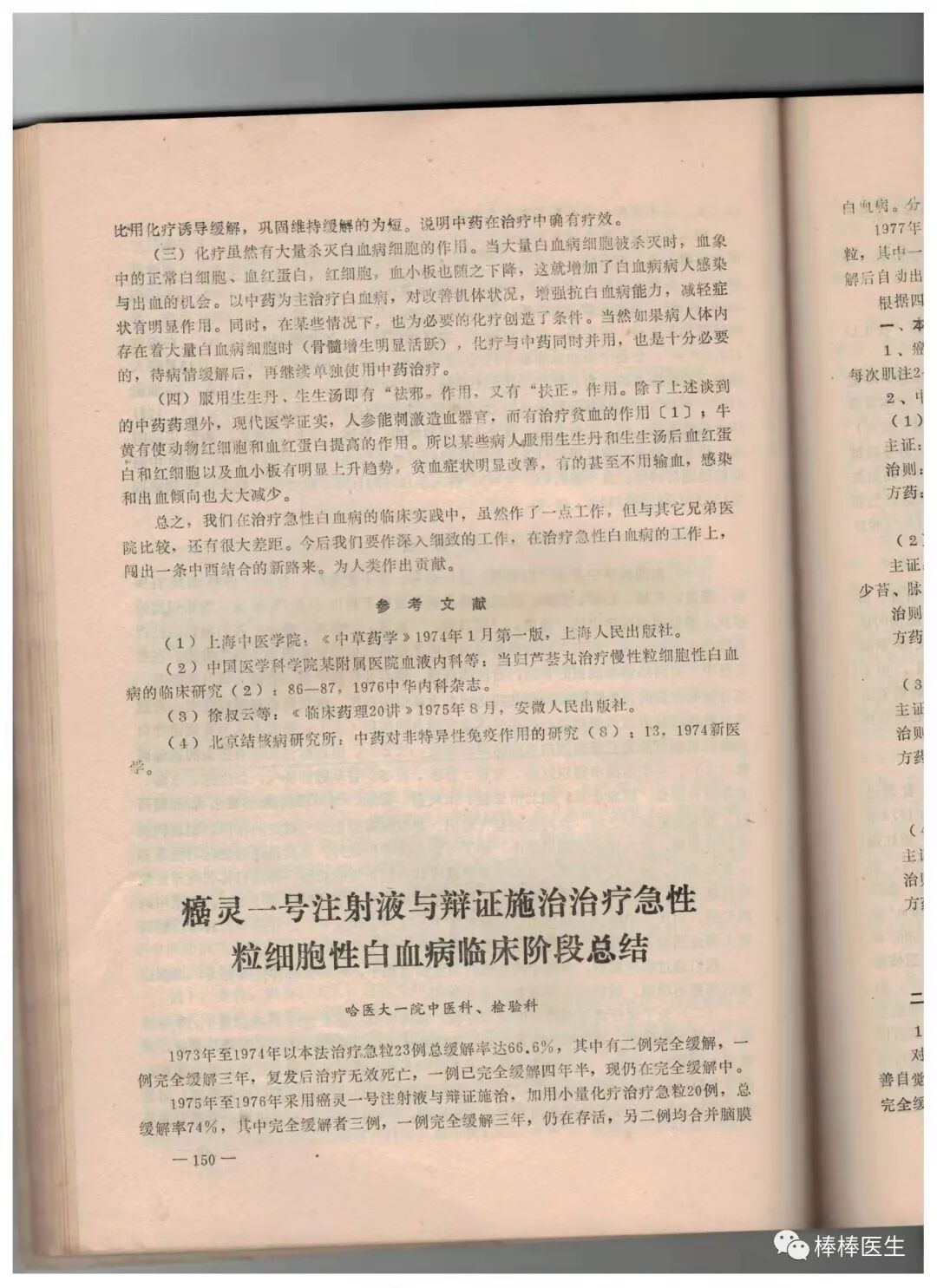 一模一样的文章出现在《黑龙江省中医学会1978年学术会议资料汇编》里,署名是哈医大一院中医科、检验科。