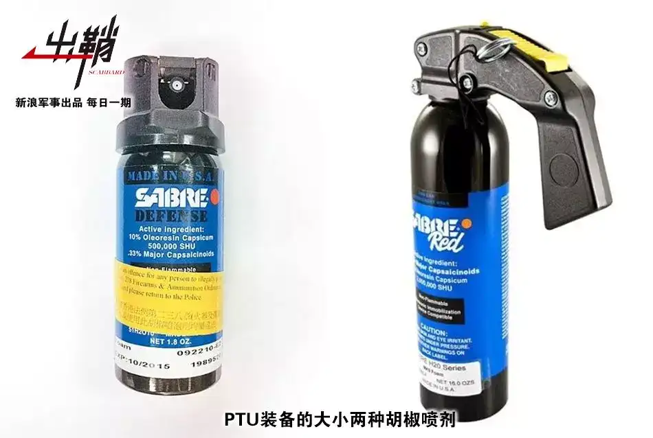 Sabre MK-9胡椒噴罐,單位價格:16盎司(473.18毫升裝量)79.99美元,該圖片雖然寫著是200萬斯科維爾指數(SHU,形容物質刺激辛辣程度,舉例:朝天椒也就30000-40000SHU。)實際上香港警方使用的軍用級別催淚瓦斯:513萬SHU