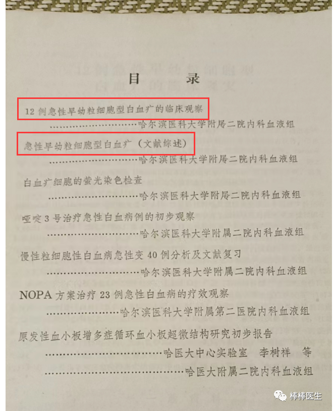 现在我又淘到了一本1978年黑龙江省的《肿瘤防治资料》,里面收集了哈医二院内科血液组的6篇白血病论文,有2篇是关于APL的,如图。