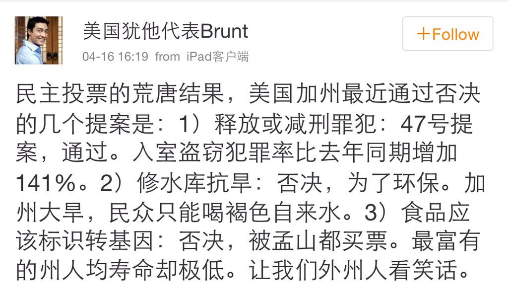 方舟子 @fangshimin · Apr 16美国反转控跑中国网站造谣。加州人均预期寿命80.8岁,在全美50州中排第四,而犹他州排第十。谁该笑谁呢? https://pbs.twimg.com/media/CCwrBbVUIAAn3Db.jpg:large