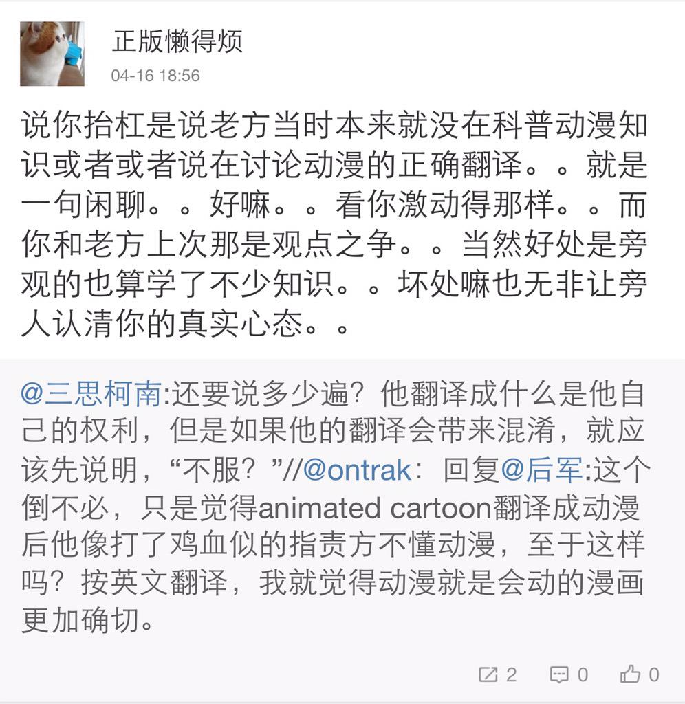 方舟子 @fangshimin · Apr 20动画电影有大片有短片,把动画大片叫动画电影有何不可?人有大人有小孩,三思柯南是不是要认为不能把大人叫人?这种智商,真的是徐壕级别的。我以前以为是装傻,现在看来是真傻。 https://pbs.twimg.com/media/CDBfoXyUIAA_C5H.jpg:large