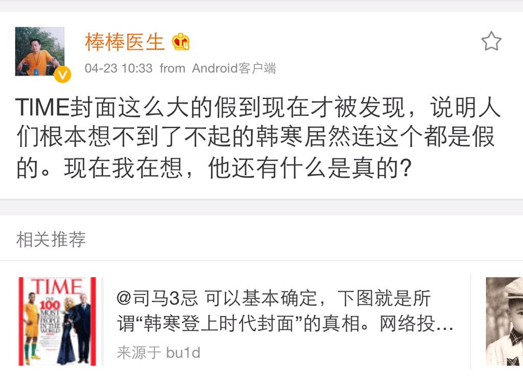 方舟子 @fangshimin · Apr 22韩寒的骗子身份是真的。 https://pbs.twimg.com/media/CDQRYAvUEAASrfy.jpg:large