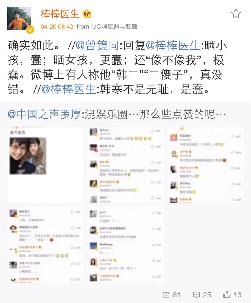 方舟子 @fangshimin · Apr 25老韩寒无耻小韩寒蠢 https://pbs.twimg.com/media/CDe_rX2VAAAbtgM.jpg:large
