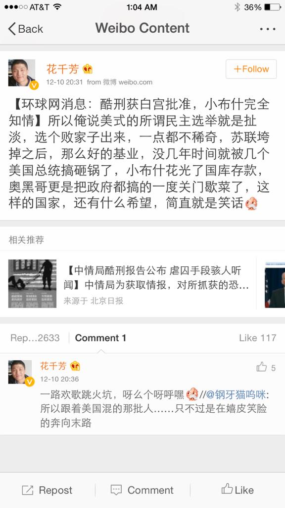 内含子 ?@intronintron Dec 19@fangshimin 美国人经常说谎,明明觉得你做得不好,还要很夸张地说interesting, great……[囧]