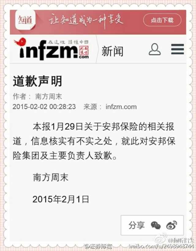 方舟子 @fangshimin · Feb 2南方周末造了那么多谣,构陷了那么多人,就见语焉不详地道歉了这么一次,还是红二代厉害。不知那篇报道究竟哪个地方不实?还是并无不实之处南方周末总算对了一次?只道歉不纠正有什么用。 https://pbs.twimg.com/media/B85nglJCMAEeWiL.jpg:large