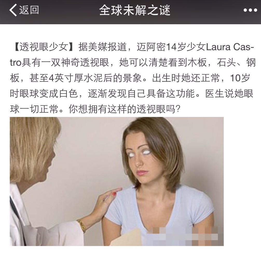 方舟子 @fangshimin · Feb 3在微信上见到这则新闻。所谓美媒报道,是美国《每周世界新闻》报道,这份报纸名字很高大上,实际上是专门编造消息供人一乐的小报,美国没人当真(比如这条新闻它在2009年报道后没有第二家美国媒体有报道),但中国媒体经常把它编的笑话当新闻。 https://pbs.twimg.com/media/B86AeJoCUAEknN6.jpg:large